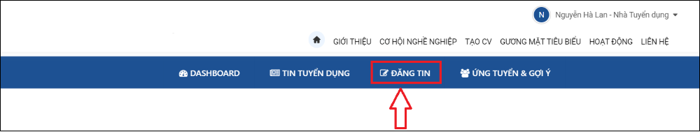 Bước 4: Sau khi tài khoản được Nhà trường duyệt, NTD nhấn vào Đăng tin để đăng tin tuyển dụng